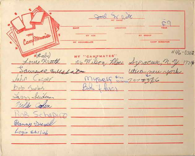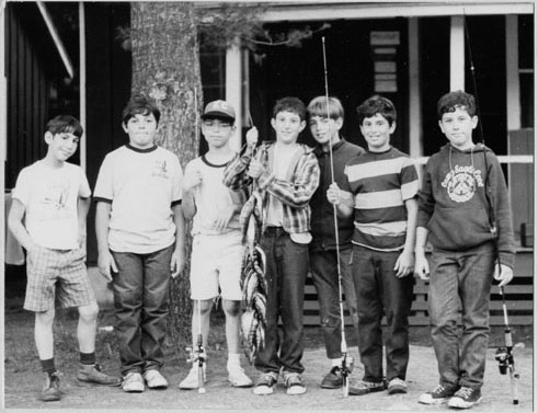 Cabin #8 1970 - From left to Right: Andy Lowenthal, Paul Shine, Stuart Etengoff, Marc Slonim, Jeff Rosenfeld, Mitch Wiesberg, Jeff Weiss. The Counselors were Al Loisalle & Brad Grossman.