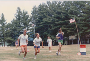 Jim Herman(in purple) starts a race during the '85 Color War track meet